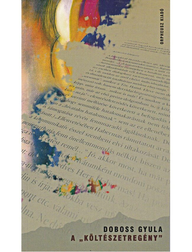 DOBOSS GYULA: KÖLTÉSZETREGÉNY Orpheusz Kiadó (2003) A Költészetregényben Tandori továbbra is azokat a lényeges művészeti-életünkbéli jelenségeket szemléli, amelyeket posztmodern korunkban éppen ő ragadott meg elsők között hazai irodalmi közegben: a határok, az áttűnések, az azonosságok-másságok nyelvi, poétikai, lételméleti meghatározottságait. Filozófiai egyszersmind erősen érzelmi alapozású vers- és prózauniverzuma folytonosan tudatos dialógusban áll az idézhető világgal, az…