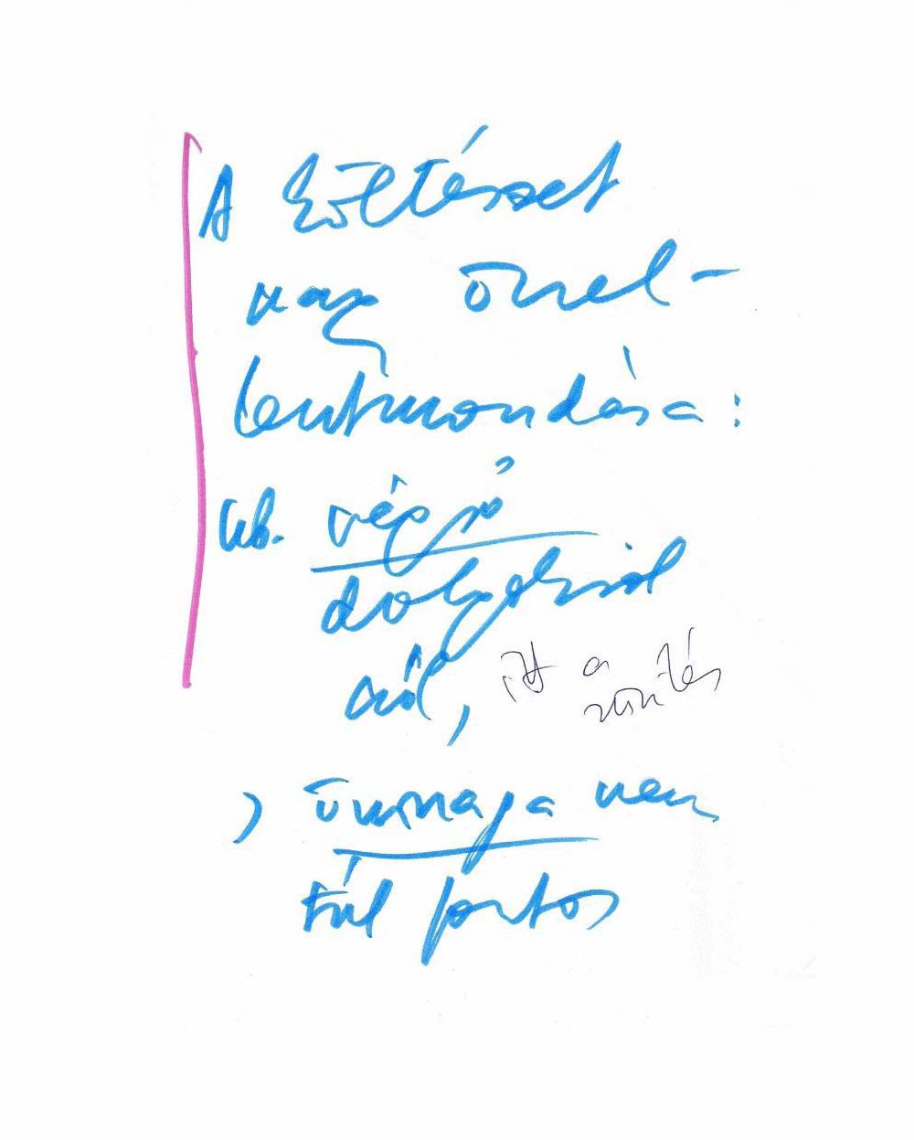 Ez volt az én irodalmi pályám mind a mai napig, és boldog vagyok, hogy itt állok, ilyen jókedvűen Londonban, mert nem történt baj. Ahogy bután szokták mondani, tele vagyok tervekkel, elképzelésekkel, ha ezt annak lehet nevezni. Azt tudom mondani, hogy ennek a mélyén az van, Paul Clee nevét, ha már említettem, hogy az ember életének a dolga, hogy így mondjam – nevetséges dolog életművet emlegetni, ilyen van, de nincs is, ez apró részletekből áll. Napról napra össze kell hozni magunkat, meg azt a dolgot. Ez valahogy akkor jó, ha úgy sarjad, mint egy növény. Kedvenc festőimtől, meg néhány írótól tanultam, akár Ottliktól stb. Vannak írók, akiknek nagy snittek vannak a pályáin, idáig így, onnan amúgy, megint így. Én ilyesmit nem látok.
